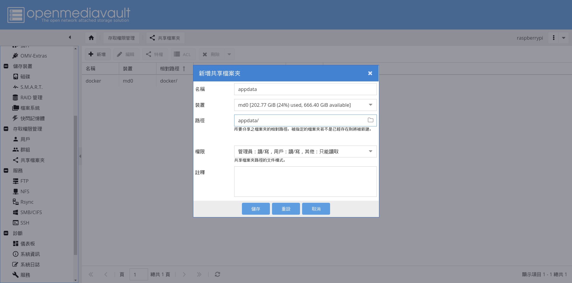 雖然說 OMV 提供的東西用 CLI 也都能做到,但想到要搞權限什麼的就好麻煩… 還是直接用現成的好了 XD