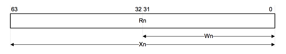 x1 - x30會拿到 64-bits ,使用w0 - w30會拿到 Lower 32-bits x31不直接存取- 使用